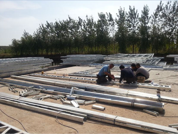 工人正在搭建輕鋼龍骨骨架