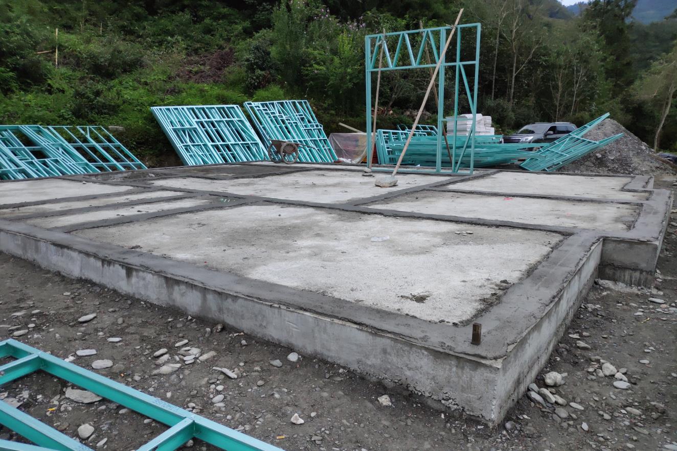 確定圖紙之后,黨哥那邊按照地基圖紙修好了地基,我方生產(chǎn)材料并運(yùn)輸?shù)浆F(xiàn)場,進(jìn)行施工。修建過程中還有一個(gè)小插曲,在主體龍骨剛剛搭建完成的時(shí)候,平武那邊發(fā)生了5.1級的余震,輕鋼龍骨主體經(jīng)受住了考驗(yàn),沒有絲毫的影響。